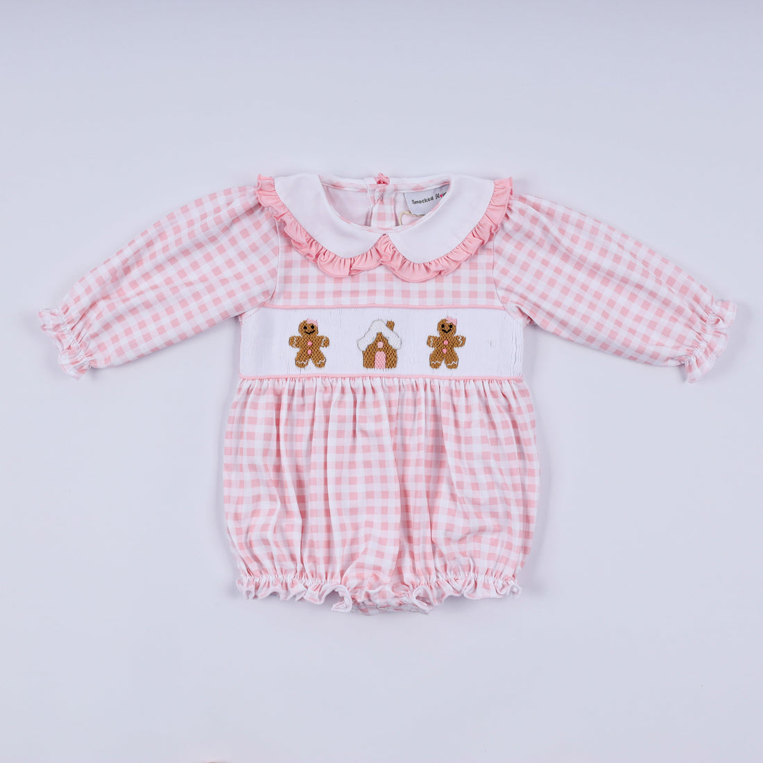 Red christmas santa claus hand smocked plaid ruffle pants set