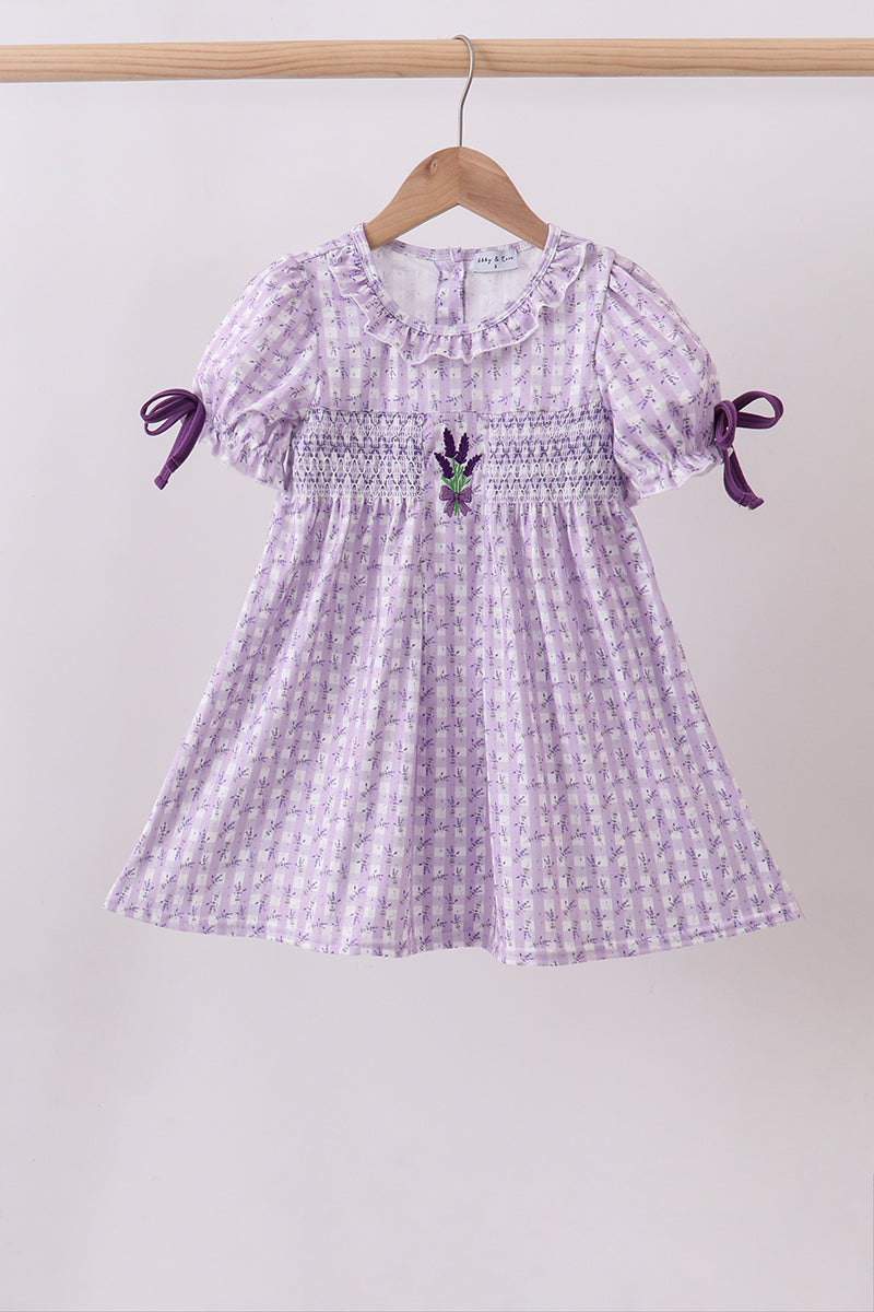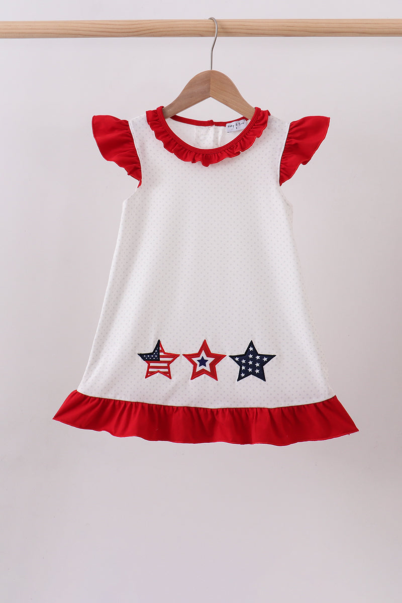 Pink fireworks flag smocked jacquard scalloped ruffle dress