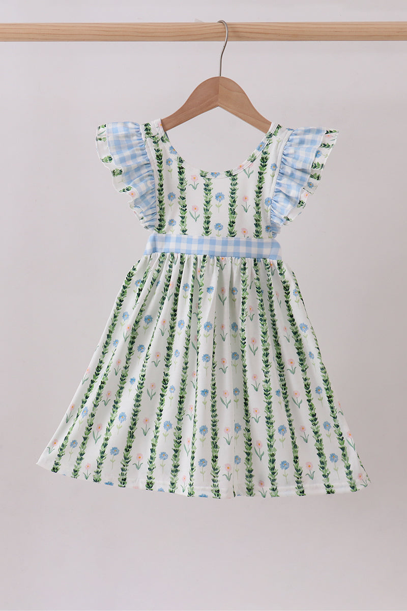 Platinum Blue floral print ruffle dress
