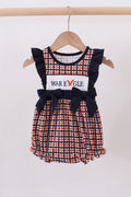 Celebrate your Auburn pride in the most adorable way! This charming bubble features a smocked ruffle design with the iconic War Eagle emblem, perfect for game day or everyday wear. The playful silhouette and quality construction make it a must-have for devoted fans. Whether you're cheering from the stands or showing your school spirit around town, this piece brings comfort and style together. Go Tigers!