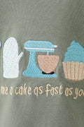 Add a sprinkle of charm to your kitchen style with the "Bake Me a Cake as Fast as You Can" embroidery bubble. This playful design brings a fun, lighthearted vibe to your baking days, perfect for anyone who loves to whip up treats with a smile. Whether worn as a cozy top or displayed as a creative patch, it’s sure to spark joy and maybe even speed up your baking game!