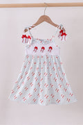 Baseball applique ruffle gingham dress