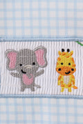 This Blue Animal Smocked Gingham Romper combines charming gingham pattern with adorable animal smocked details, making it perfect for playful days. Lightweight and comfy, it allows easy movement for little adventurers while adding a touch of whimsy to their outfit. Ideal for sunny outings and everyday fun!