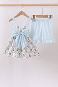 Hop into adorable style with this charming blue bunny bow ruffle shorts set! Perfect for little ones who love cute details, this playful ensemble features sweet ruffled shorts paired with a matching top adorned with a precious bunny bow accent. The soft blue hue is gentle on the eyes while the whimsical design sparks joy and imagination. Ideal for playdates, casual outings, or cozy days at home, this set combines comfort with undeniable charm. Watch your little one's face light up in this delightful outfit that celebrates childhood wonder!