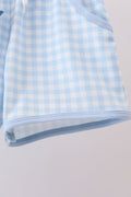Blue character embroidery gingham shorts set