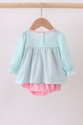 Add a splash of fun with this Blue Character Embroidery Ruffle Bubble romper! Featuring charming embroidered characters and playful ruffle details, this bubble outfit combines comfort and cuteness perfectly for your little one. Its soft fabric and easy fit make it ideal for active days filled with giggles and adventures.