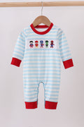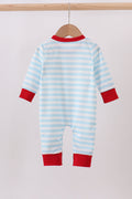 This charming blue romper features playful character embroidery that adds a fun twist to classic stripes. Soft and breathable, it’s perfect for little adventurers who love comfort with a splash of whimsy. Easy to wear and easy to love!