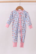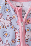 Cluck into comfort with this whimsical blue chicken floral print pajama romper! Featuring adorable poultry-inspired patterns mixed with delicate florals, this one-piece wonder is perfect for cozy nights in or lazy weekend mornings. The soft, breathable fabric keeps you cool and comfortable, while the playful design brings a smile to your face. Whether you're a chicken enthusiast or just love quirky sleepwear, this romper combines style and comfort in the most egg-stra special way. Sweet dreams never looked so fun!