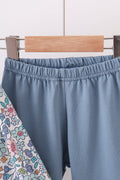Embrace your playful side with this Blue Floral Blessed Embroidery Ruffle Pants Set. Featuring delicate floral embroidery and charming ruffle details, this set brings a fresh, feminine vibe to your wardrobe. The comfortable fit lets you move freely while looking effortlessly stylish, perfect for sunny days or cozy lounging. Add a touch of fun and elegance to your everyday look with this unique and delightful ensemble.