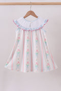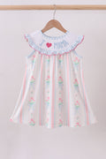 Celebrate motherhood in style with this charming blue floral dress! Featuring a sweet "I love MAMA" message, delicate smocking detail, and playful ruffles, it's the perfect way to show appreciation. The cheerful floral print and comfortable fit make it ideal for special occasions, family gatherings, or everyday wear. A heartfelt piece that brings joy and personality to any wardrobe.