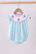 Blue octopus embroidery stripe ruffle bubble