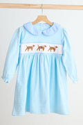Get ready to turn heads with this playful blue puppy hand smocked stripe dress! With its adorable puppy design and expert smocking, your little one will be the life of the party. Perfect for any occasion, this dress is both stylish and comfortable. Woof-tastic!