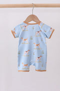 Blue puppy print bamboo romper
