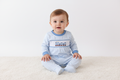 This playful blue train smocked stripe romper combines charming stripes with a cute smocked design for a fun, comfortable fit. Perfect for playdates or sunny adventures, it offers easy movement and a delightful style that keeps little ones looking adorable all day long.