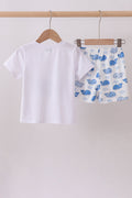 Blue whale applique shorts set