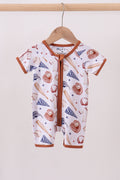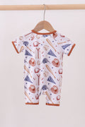 Swing into comfort with this adorable brown baseball bamboo romper! Perfect for little sluggers who love the game, this cozy one-piece features soft, breathable bamboo fabric that keeps kids cool whether they're cheering from the stands or playing in the backyard. The classic baseball-inspired design brings sporty charm to everyday wear, while the gentle bamboo material is kind to sensitive skin. Easy to slip on and move in, it's the MVP of playtime outfits!
