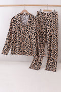 Get cozy and stylish with the Brown Leopard Bamboo Mom Pajama Set! Crafted from soft, breathable bamboo fabric, this playful set keeps you comfortable all night long. The chic leopard print adds a fun touch to your loungewear, perfect for moms who want to relax in style. Whether you're winding down or catching some zzz's, this pajama set blends comfort and flair effortlessly.