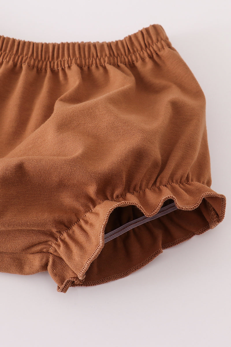 This brown plaid bloomer set brings a charming, playful touch to any little wardrobe. Soft and comfy, it’s perfect for active days filled with fun and adventure. The classic plaid pattern adds a timeless style, making it easy to mix and match with other favorites. Ideal for keeping your little one cozy and cute all day long!