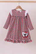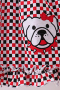 Paws-itively adorable! This charming dress features a classic checkered pattern with a sweet Georgia dog applique that'll have everyone smiling. Delicate ruffles add a playful twirl to every step, making it perfect for playdates, family gatherings, or just spreading joy. The cheerful design captures that Southern charm while keeping comfort front and center. A wardrobe essential that's as fun to wear as it is to look at!