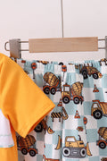 Construction vehicle embroidery shorts set