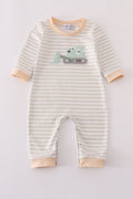 This cream romper features a fun excavator applique and playful stripe design, perfect for little adventurers. Soft and comfortable, it’s ideal for active days filled with imagination and exploration. Easy to wear and cute to boot!