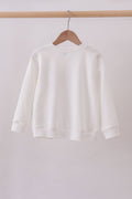 Celebrate your bond in matching style with this charming cream sweatshirt, perfect for mom-and-me moments. Each piece features a hand-sewn patriotic bow detail that adds a touch of whimsy and personality. Crafted with comfort in mind, this cozy sweatshirt is ideal for casual outings, family photos, or just snuggling up together. The soft, neutral cream tone pairs effortlessly with any outfit, while the patriotic accent brings a fun, festive flair. Create coordinating looks that show off your special connection!
