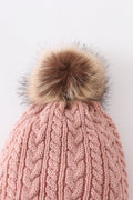 Dust rose cable knit pom pom beanie hat baby toddler adult