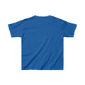 The kids heavy cotton tee is perfect for everyday use. The fabric is 100% cotton for solid colors. Polyester is included for heather-color variants. These fabrics are prime materials for printing. The shoulders have twill tape for improved durability. The collar is curl resistant due to ribbed knitting. There are no seams along the sides.