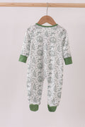 Celebrate the festive season in style with this playful green romper adorned with cheerful Christmas tree prints. Perfect for cozy holiday gatherings or joyful winter playdates, its soft fabric keeps comfort front and center while the bright design spreads seasonal cheer. Embrace holiday fun wherever you go with this charming, easy-to-wear romper!