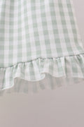 Adorable gingham shorts set featuring charming cross embroidery details and delicate ruffled edges. The playful green palette and classic gingham pattern make this a perfect pick for warm-weather adventures. Soft, breathable fabric keeps you comfortable all day long, while the coordinated set design offers effortless styling. Ideal for casual outings, playdates, or creating Instagram-worthy moments. A sweet addition to any wardrobe that celebrates fun, feminine style.