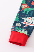 Get ready for fun with this green dinosaur print pants set! Featuring playful dino patterns, it’s perfect for adding a touch of adventure to any day. Comfortable and cute, this set is great for little explorers who love to roam in style.