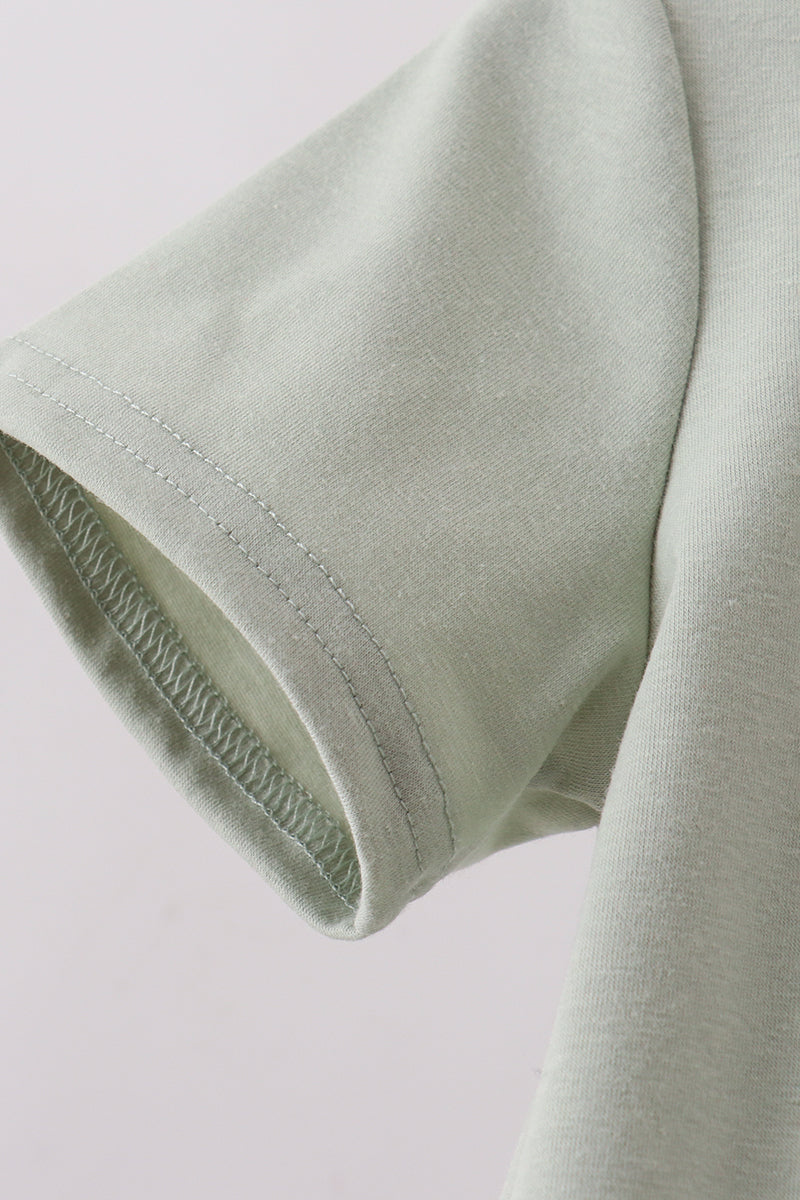 Green farm animal embroidery shorts set