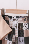 Green hunting deer embroidery checkered shorts set