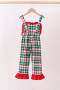 Green plaid ruffle jumpsuit