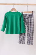 Green santa claus applique pants set