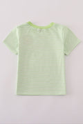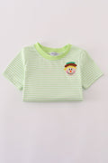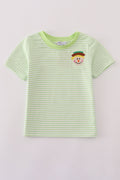 Add a touch of whimsy to your wardrobe with this green scarecrow embroidery stripe top. Featuring charming embroidered scarecrow details and playful stripes, it’s perfect for brightening up any casual outfit. Soft and comfortable, this top brings fun and flair to your everyday style.