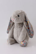 Meet your new fuzzy best friend! This charming grey plush bunny sports a delightful floral design that's as sweet as it is snuggly. Perfect for little dreamers and stuffed animal collectors alike, this soft companion brings joy to playtime and comfort to bedtime. Its gentle grey palette with pretty floral accents makes it an instant favorite for any child's room.