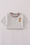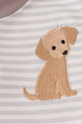 Grey puppy embroidery stripe top