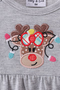 Grey reindeer applique ruffle romper