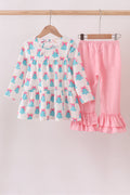 Get ready to jingle and jangle in this playful Mint Christmas Tree Ruffle Pants Set! Featuring festive mint-green pants adorned with charming Christmas tree prints and flouncy ruffles, this set brings holiday cheer with every twirl. Perfect for cozy gatherings or spirited photo ops, it adds a fun and festive touch to your little one’s seasonal wardrobe. Celebrate the holidays in style and comfort!