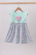 Twirl into springtime magic with this enchanting mint floral dress! Featuring adorable character appliqués and delicate ruffles, it's the perfect blend of whimsy and charm. The soft mint hue pairs beautifully with cheerful floral details, while playful ruffles add movement and personality to every spin. Ideal for little ones who love to express their fun-loving style, this dress brings joy to everyday adventures and special occasions alike.