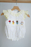 Meet the sweetest addition to your little one's wardrobe! This charming mustard bubble features delightful character details and hand-smocked ruffle accents that bring personality to playtime. The soft, breathable fabric keeps your child comfortable all day long, while the playful design makes getting dressed an adventure. Perfect for casual outings or cozy days at home, this cheerful piece is sure to become a favorite in rotation.