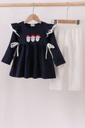Get festive and cozy with this Navy Christmas Santa Claus Embroidery Pants Set! Featuring charming Santa embroidery on a deep navy backdrop, these pants bring holiday cheer with a playful twist. Perfect for lounging or casual holiday gatherings, the soft fabric ensures all-day comfort while spreading seasonal joy. Add a dash of merry mischief to your winter wardrobe with this fun, festive set!