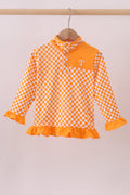 Orange Tennessee checkered pullover ruffle top