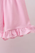 Celebrate big sister status in style with this charming pink shorts set. Featuring delicate embroidery detailing and playful ruffled hems, it's the perfect outfit for special occasions or everyday wear. The soft, comfortable fabric keeps her looking adorable all day long. An ideal gift to make any big sister feel extra special and proud of her new role.