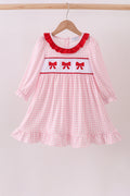 This charming pink gingham dress features delicate bow embroidery and playful ruffles, adding a sweet twist to a classic pattern. Perfect for sunny days and special occasions, it brings a cheerful, whimsical touch to any wardrobe. Lightweight and comfortable, it’s designed to keep you feeling as fun as you look.