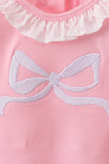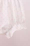 This adorable pink bow embroidery ruffle bloomer set adds a playful touch to any little one’s wardrobe. Crafted with soft fabric and charming ruffle details, it combines comfort with cute style. The delicate embroidered bow highlights the design, making it perfect for everyday fun or special occasions. Let your child twirl and giggle in this sweet and comfy set!