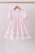 Pink bow smocked ruffle dress