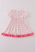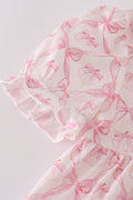 This playful pink dress features a charming pumpkin print and a cute bow tie detail, perfect for adding a touch of festive fun to any occasion. Its vibrant design and comfortable fit make it an ideal choice for celebrating the season in style.