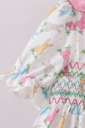 Pink bunny smocked ruffle shorts set